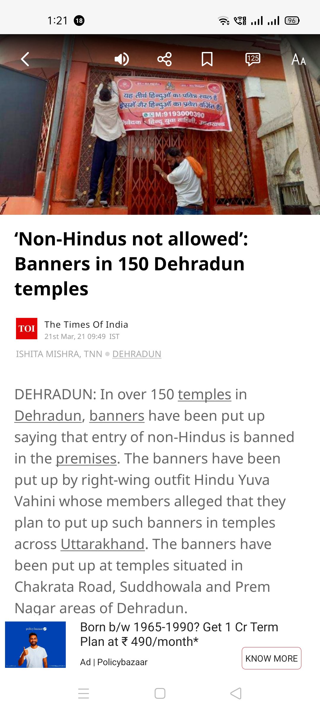 देहरादून के 150 से ज्यादा मंदिरों में योगी की हिन्दू युवा वाहिनी सेना यह बोर्ड लगा रही है कि यहां NON हिन्दू नहीं आ सकते।