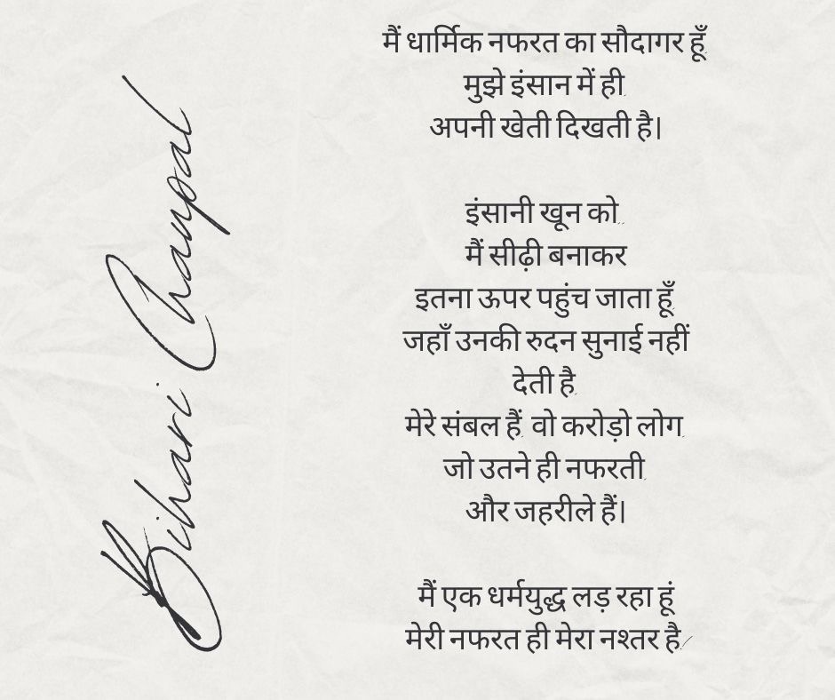 He can be reached at twitter : https://x.com/ChaupalBihari